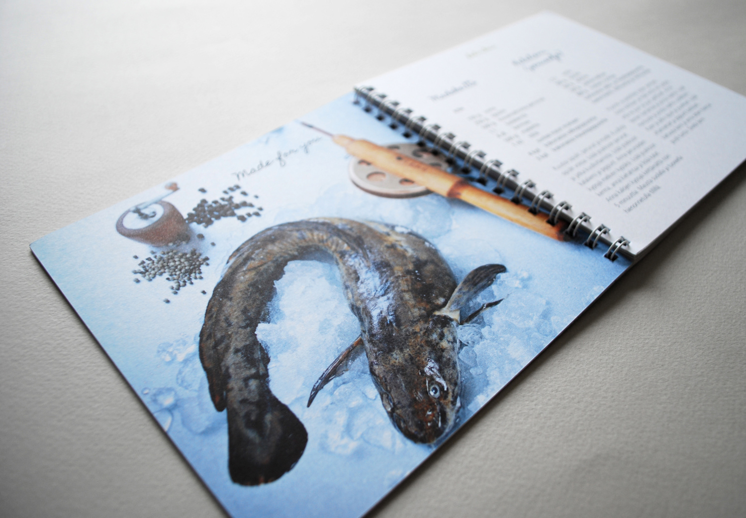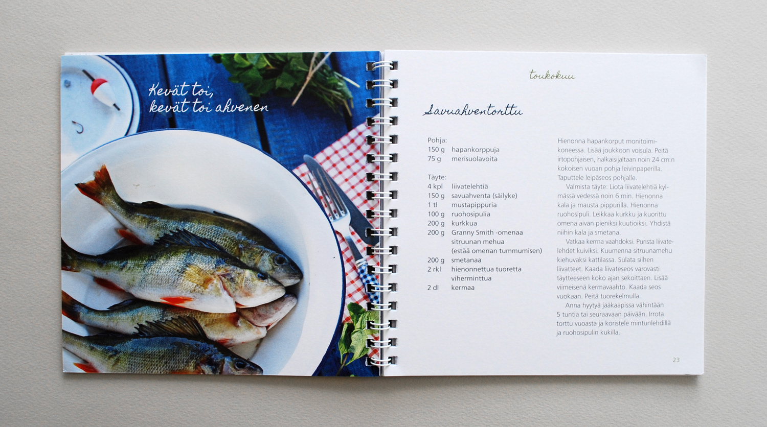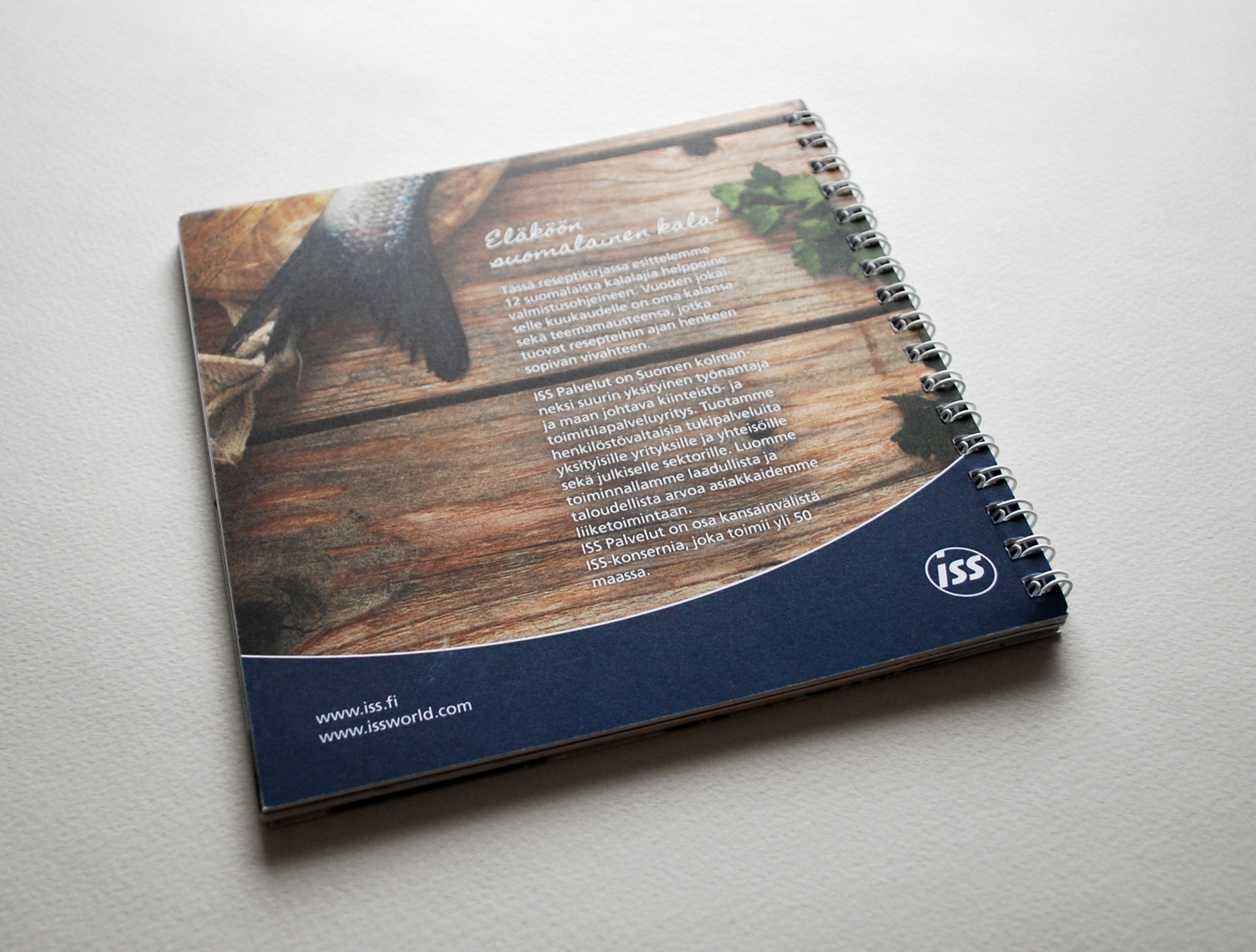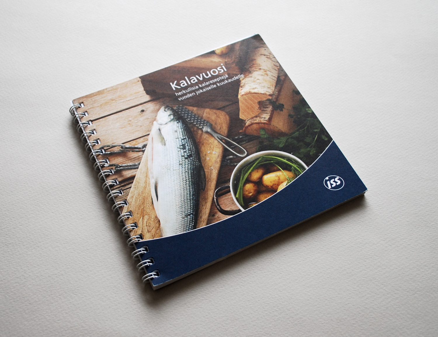 Layoutin suunnittelu sekä taitto ISS Cateringin reseptikirjalle nimeltään "Kalavuosi" Osallistuin myös kuvien tyylin ja kuvausten suunnitteluun. Työnantaja: Huvila Brand & Design. Valokuvaaja: Laura Riihelä.