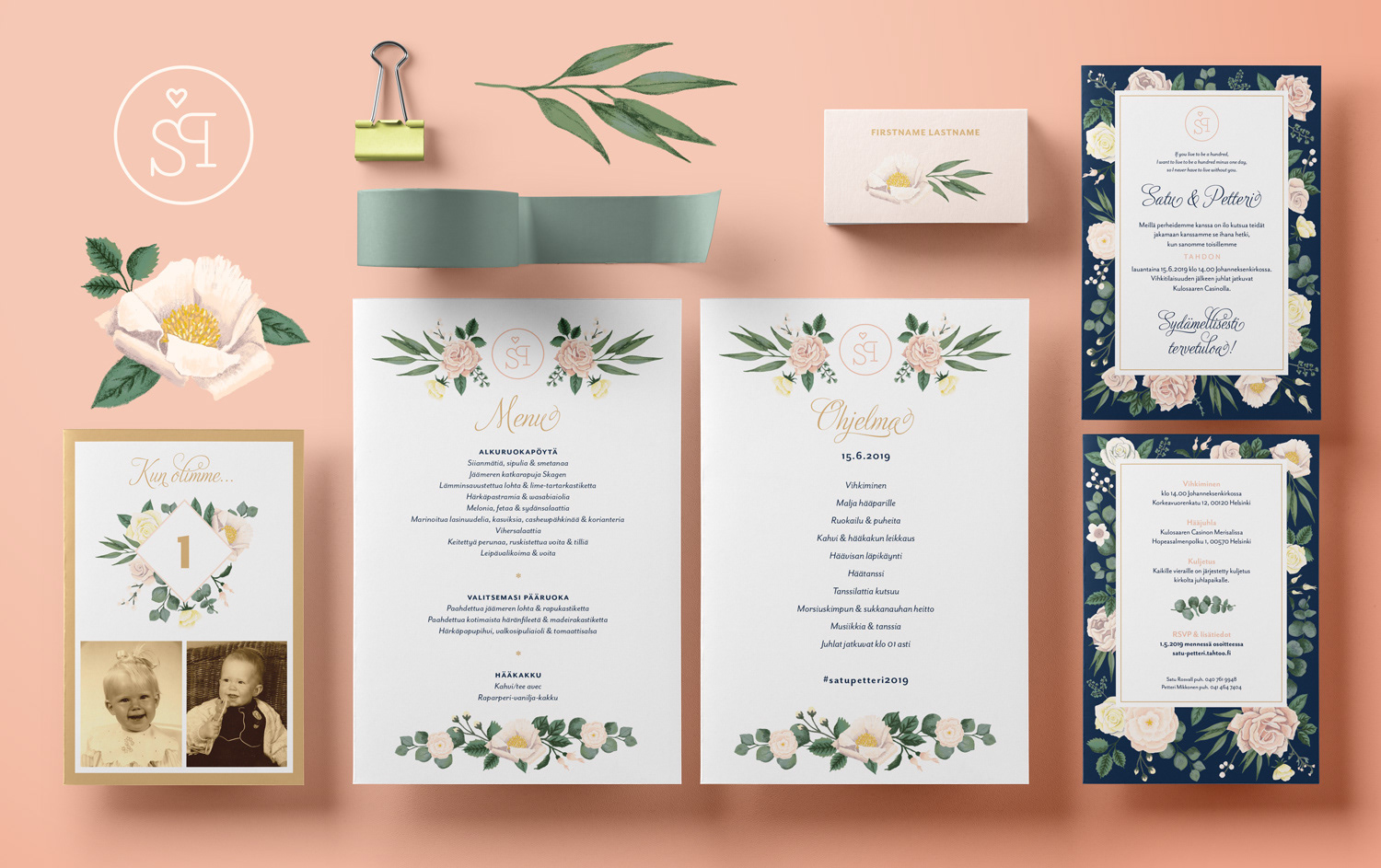 Visuaalinen ilme häihin. 2019. Asiakas: Satu&Petteri