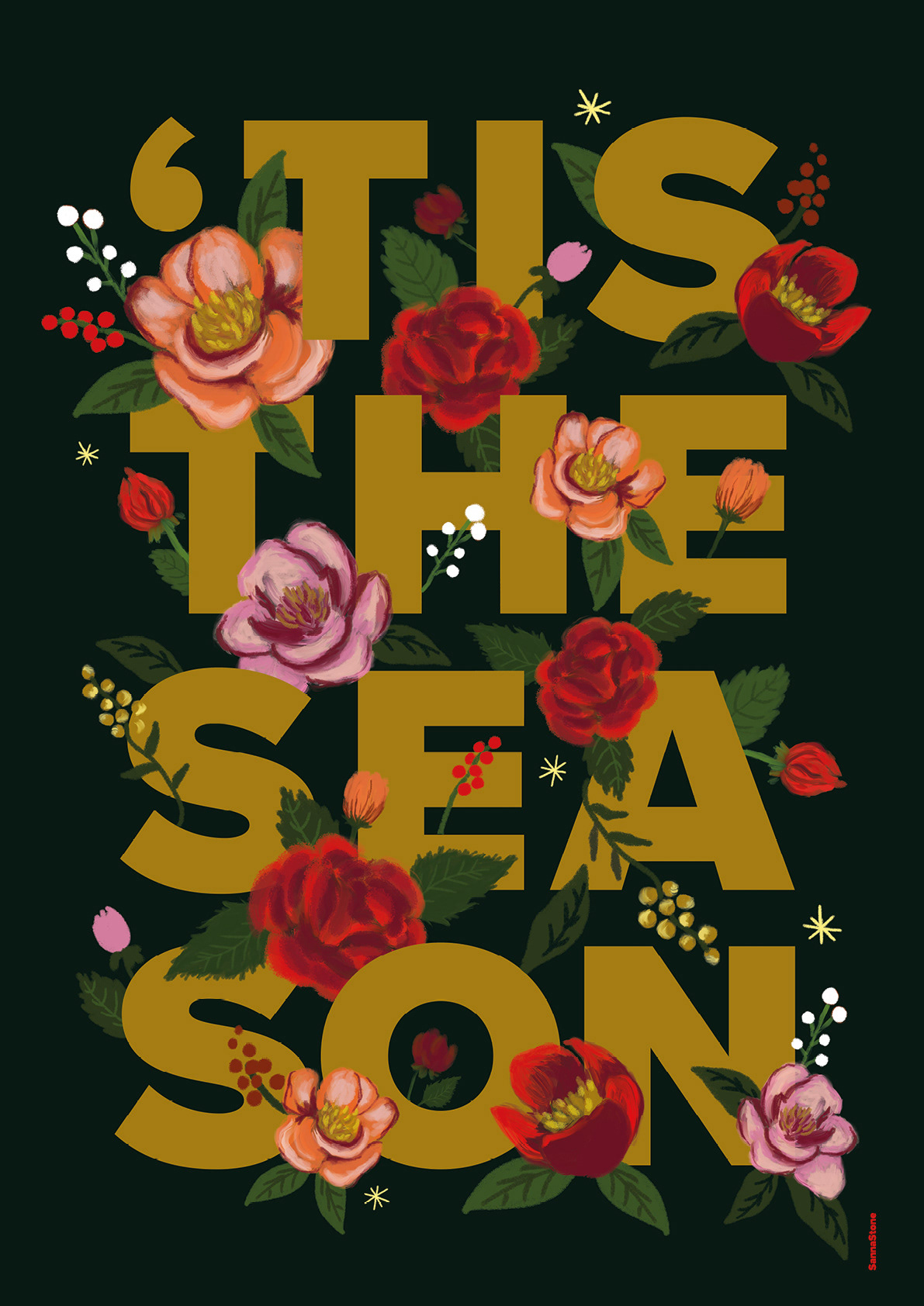 Joulujuliste "'Tis the season". Myynnissä Julistamossa koossa A2, 50x70cm ja 70x100cm.